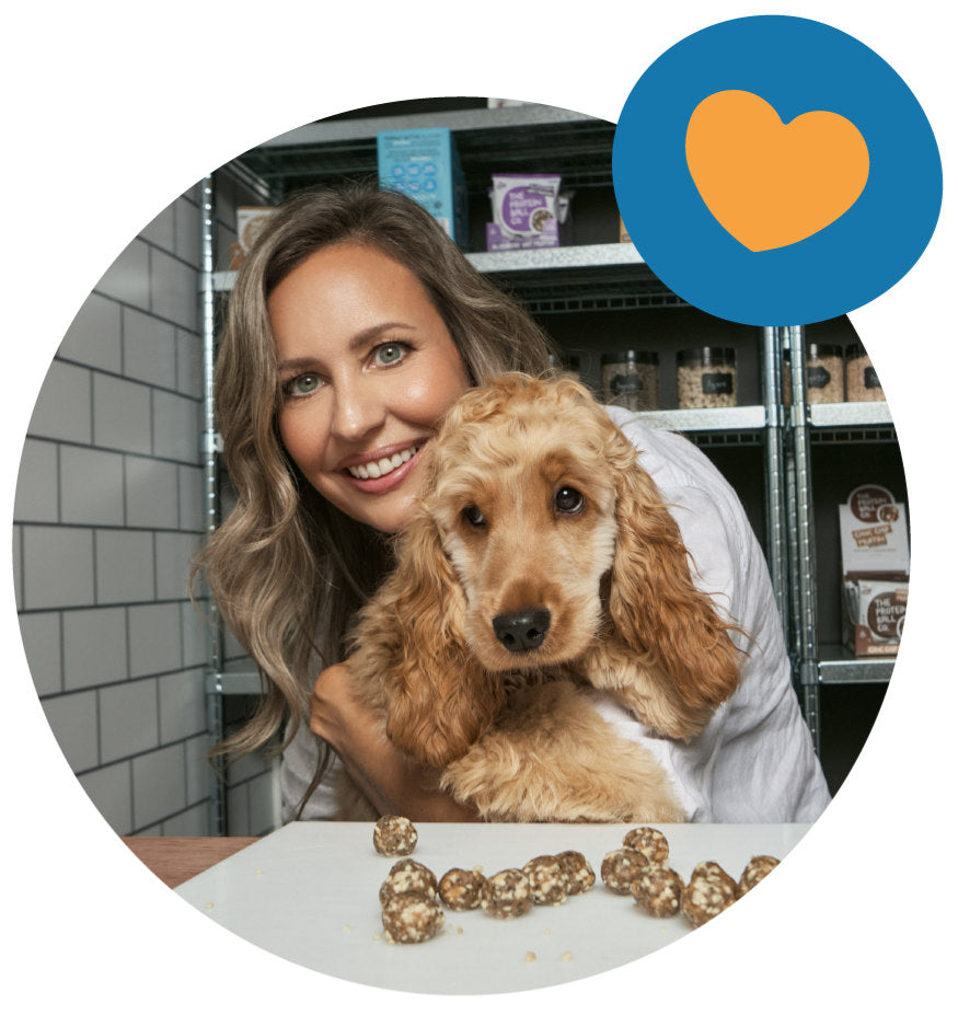 Dog-safe roasted peanut butter chicory fibre, tapioca fibre, chia seeds, toasted pumpkin seed, protein powder, sunflower seeds, golden flaxseed, coconut cream, citrus fibre, apple, and of course... a whole lot of love